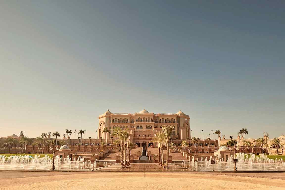 Låt blicken svepa över horisonten och beundra Emirates Palace Mandarin Oriental – ett gyllene palats av orientalisk prakt på Abu Dhabis västkust där Persiska vikens glittrande...