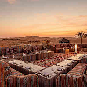 Att äta i öknen är något alldeles speciellt. Avnjut storslagna frukostar i soluppgången till stämningsfulla middagar med levande ljus – här tillagas det bästa från världens alla hörn där lokala delikatesser serveras i en sofistikerad atmosfär. Om du vill uppleva något alldeles unikt väntar en privat middag på sanddynerna där två avsmakningsmenyer och en dedikerad butler väntar.