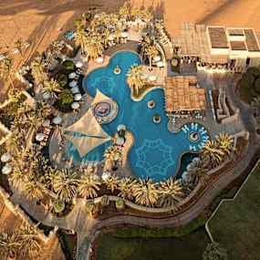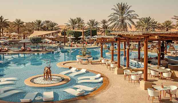 Qasr Al Sarab Desert Resort by Anantara byggdes på beställning av Förenade Arabemiratens kungafamilj och det tog endast 650 dagar innan ett sagolikt palats stod färdigt mitt i Rub al Khalis öken. Här möts beduinernas arv och arabisk prakt i majestätiska byggnader som blivit kuliss för Bollywood- och Hollywoodfilmer som Star Wars och Dune – där både kungligheter och filmstjärnor har bott vid flera tillfällen.