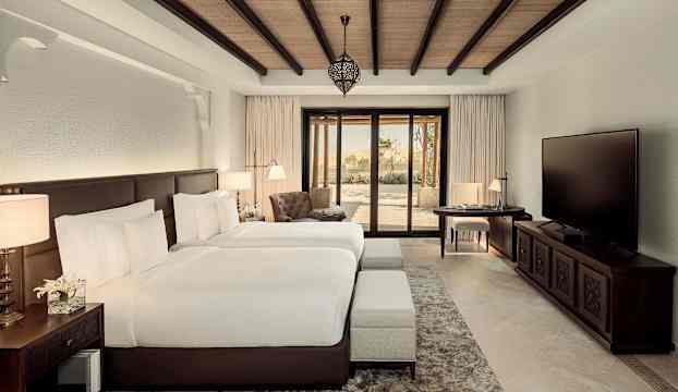 Beundra Qasr Al Sarab Desert Resort by Anantaras rum, sviter och villor som bär på spår av den arabiska elegansen, utformade som små palats mitt i öknen. Här väntar balkonger och terrasser som öppnar upp mot storslagna vyer, medan villorna erbjuder en extra touch av lyx med generösa ytor, privata pooler och personlig butler-service.