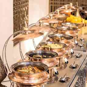 Hotellets concierge kommer med sina bästa tips: Boka bord på Thiptara och njut av thailändska rätter medan du ser den spektakulära fontänshowen utanför. Om du inte vill lämna rummet erbjuds en världsklassig room service där du rekommenderas prova "butter chicken".