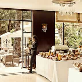 Elegant design och utsökta detaljer väver samman ett sagolikt lugn som leder dig rakt in i hotellets förtrollande värld. Under dagens mjuka rytm speglas solen i det glittrande poolvattnet, medan havsbrisen bär med sig doften av frihet och sommar. Från köket sprider sig lockande aromer – fantasifullt komponerade rätter som, tillsammans med kylda drycker, förvandlar varje måltid till en upplevelse där Franska rivierans avslappnade elegans präglar varje stund.