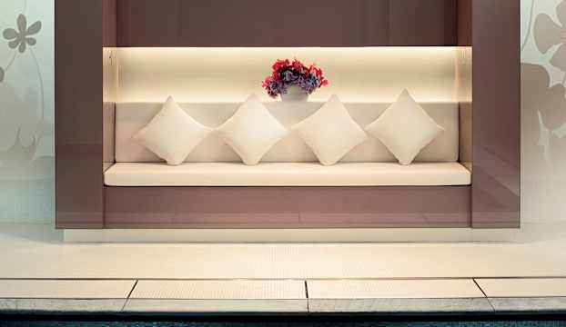 Rummen är rymliga och inredda med djärva färgtoner av grått, plommon, rosa, écru och mauve, som tillsammans liknar en färgsprakande blombukett och ger en känsla av unik lyx.