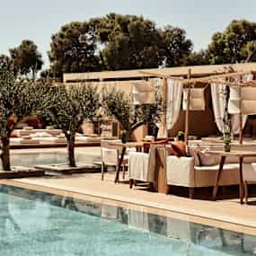 Längs den solvarma kusten i Vouliagmeni, där doftande pinjer möter det Egeiska havet, ligger The Margi – ett elegant boutiquehotell som fångar essensen av den Atenska rivieran. Här möts du av en arkitektur som andas Medelhavet, där sten och trä samspelar i stillsam harmoni. Färgstark bougainvillea klättrar över putsade murar, ljust linne klär interiörer och upplysta olivträd står ståtligt utplacerade.