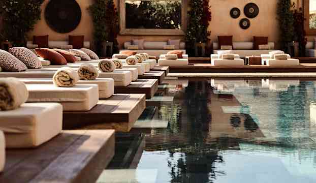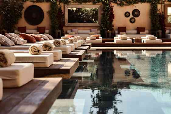 Poolområdet är en inbjudande scen i sig – olivträdens skugga, vattnets stilla yta och solsängar som tycks sväva över kanten. När kvällen sänker sig över rivieran tänds ljusen kring poolen. En sval cocktail i handen, ljudet av havet i fjärran – och känslan av att tiden tycks stå still.