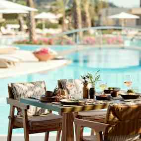 En bit utanför hotellet myllrar den livliga marinan, där människor promenerar längs vattnet, kantad av eleganta boutiquer och charmiga caféer. Samtal och skratt fyller luften från prisbelönta restauranger, där doften av nygrillad fisk och kryddiga rätter lockar. Som en rofylld kontrast vilar den orörda naturen i bakgrunden – magiska sandstränder smälter samman med det kristallklara havet, medan pinjeskogarnas doft sprider sig i den ljumma brisen.