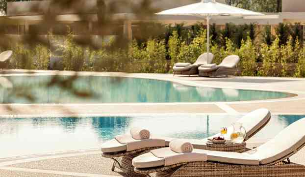 Längs den pittoreska Kassandra-halvön ligger det familjevänliga hotellet Porto Sani – en av fem exklusiva pärlor inom Sani Resort. Hotellet fångar essensen av en charmig grekisk by, där varje rymlig svit omges av grönskande trädgårdar, färgsprakande blommor och vackert murade stenväggar. De mjuka tonerna i beige, kombinerade med eleganta blå accenter, skapar en sofistikerad och inbjudande medelhavsatmosfär.
