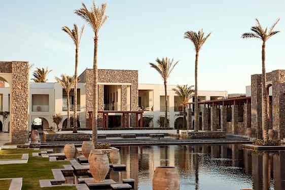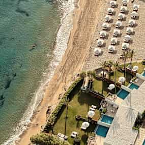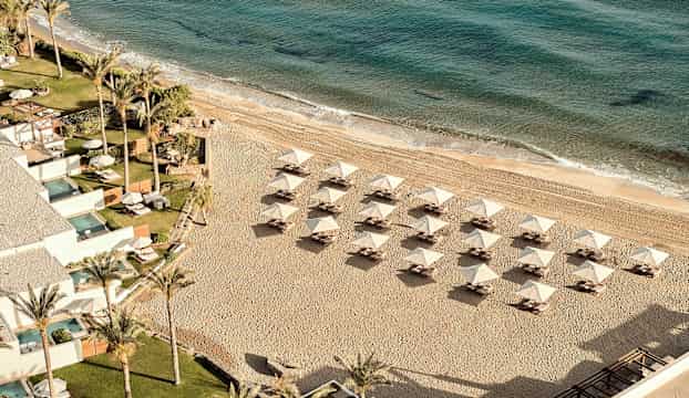 Amirandes Grecotel Boutique Resort omfamnas av två pittoreska vikar längs Kretas kustremsa. Här väntar en plats där stilfull design och havets skönhet går hand i hand.