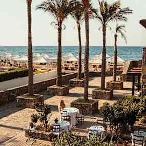 Hotellets concierge rekommenderar ett besök till Heraklions huvudgata där restaurang Filoxenia tillagar en magisk souvlaki. Strosa igenom hotellets egen trädgård innan du avnjuter en magisk sexrättersmiddag med vackra olivlundar och havet som kuliss.