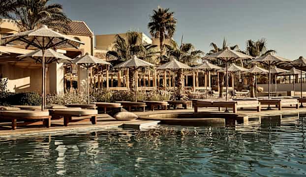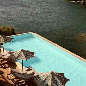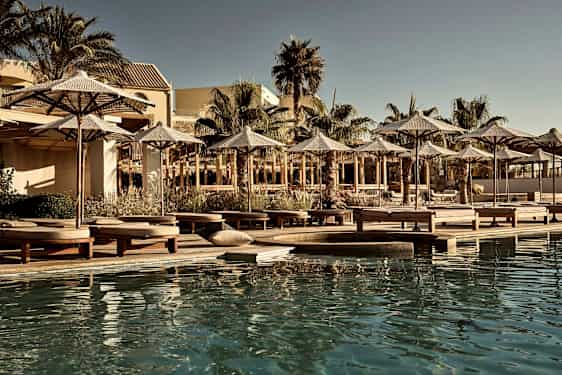 De eleganta rummen och sviterna kombinerar modern stil med bohemisk charm, och vissa erbjuder tillgång till en delad eller privat pool för en extra exklusiv vistelse. Naturliga material som trä, sten och linne smälter harmoniskt samman och varje detalj genomsyras av äkta grekisk gästfrihet - en varm och inbjudande atmosfär.