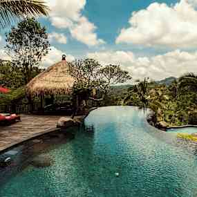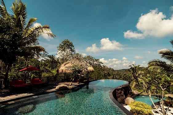 Sjunk ner i den svalkande infinitypoolen samtidigt som du blickar ut över Balis tropiska landskap. Känn solens varma strålar mot din hud och låt solstolens mjuka omfamning och naturens stillsamma lugn vagga dig till ro.