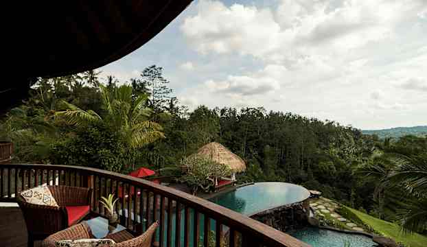 Hotellets lyxiga rum är designade för att föra samman balinesisk elegans med naturens lugn. Varje rum erbjuder exklusiv design där handgjorda badkar i sten, dekorativa vattenfall och rymliga badrum förhöjer den avslappnade atmosfären. Vakna upp till en svårslagen utsikt över Balis tropiska grönska där du ser solen lysa över risfälten från din privata balkong.