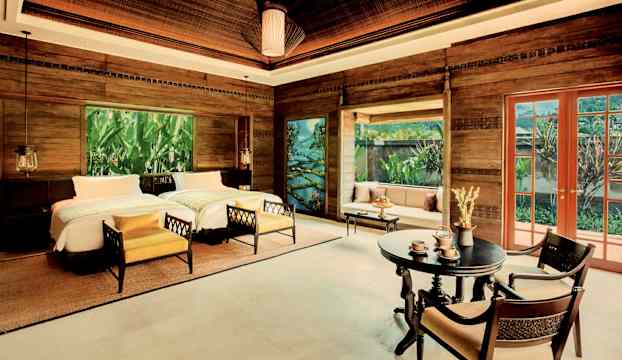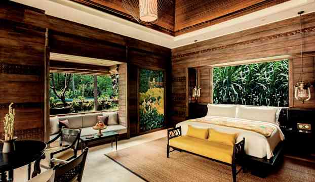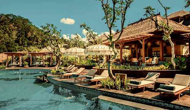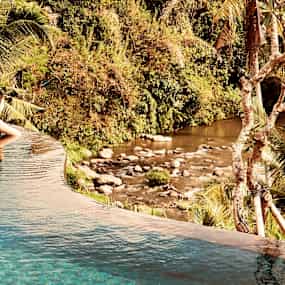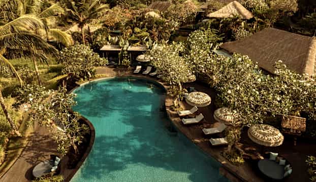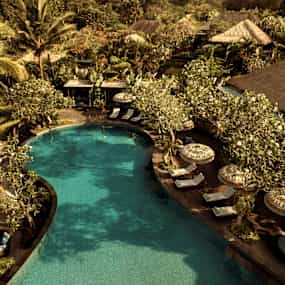Här bor du i rum med privat butler-service där balinesisk tradition hyllas genom omsorgsfullt utvalda naturmaterial som smälter samman med den vackra omgivningen. Varje svit och poolvilla har en stillsam balkong eller terrass där blicken vandrar över Balis smaragdgröna regnskog. På poolvillornas terrasser väntar även en inbjudande infinitypool som ger dig svalka under solens varma sken.