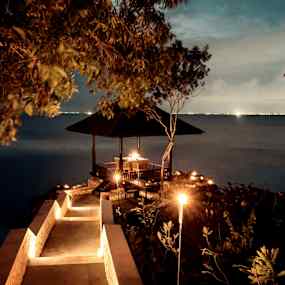 För en romantisk upplevelse erbjuder hotellet eleganta och intima middagar på unika platser som skapar magiska stunder. Följ fladdrande facklor längs en stillsam stig till Purnama Honeymoon Bale, en paviljong dramatiskt placerad på klipporna ovanför det glittrande havet. Denna exklusiva plats, reserverad för två personer per kväll, skapar en atmosfär som är något utöver det vanliga. För en mer livfull upplevelse lockar The Farm Terrace med en personlig och extravagant middag. Här väntar en kväll fylld med dofter och smaker från en levande grilluppvisning, där hotellets kock tillagar nyfångade skaldjur och förstklassiga kötträtter. Denna kulinariska resa förhöjs med noggrant utvalda viner- en gastronomisk upplevelse skapad enbart för dig.