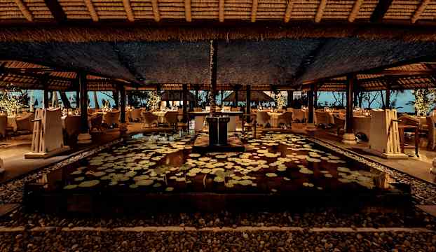 Restaurangen är kärleksfullt uppkallad efter de sköldpaddor som lägger sina ägg på närliggande stränder. Under halmtäckta tak breder restaurangen ut sig, fylld av traditionella balinesiska detaljer och med havet och trädgården som vacker kuliss. När kvällen kommer bjuds besökarna på utsökta smaker från Europa och Indonesien – allt från tandoori-rätter till färska skaldjur. Öppen för middag