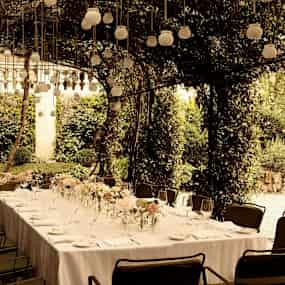 Besök den medelhavsinspirerade hemliga trädgården, fylld med vackra rosenbuskar, apelsinträd och tallar. Lyssna in ljudet av det lilla vattenfallet och koppla av med en god cocktail eller ett glas vin i handen. Sitt i den frodiga trädgården, avnjut en traditionell italiensk måltid och avsluta kvällens festligheter med en klassisk tiramisu.