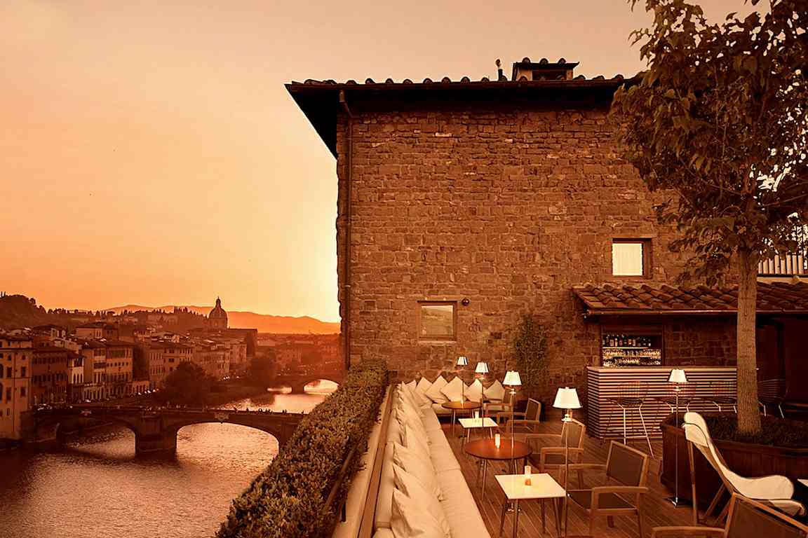 Hotel Lungarno ligger intill Arnofloden, med Ponte Vecchio och stadens historiska kvarter strax utanför. Här möter en avslappnad färgpalett i blått, vitt och brunt en omfattande...