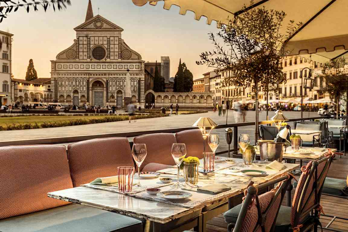 Upplev Florens där Piazza di Santa Maria Novella breder ut sig framför boutiquehotellet The Place Firenze. Santa Maria Novellas marmorfasad omges av klostergångar och historiska...