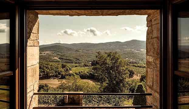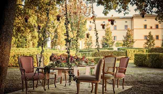 Rummen och sviterna bär tydliga spår av platsens historiska arv. Här smälter traditionell italiensk design samman med ett modernt uttryck i rum där en jordnära färgpalett kompletteras av svala toner, synliga träbjälkar och noggrant utvalda antikviteter. Utanför öppnar sig vyer mot hotellets stillsamma innergård, trädgårdar eller Toscanas smaragdgröna landskap, och i vissa rum fortsätter upplevelsen ut på en privat terrass. Etruria Suite ligger en kort promenad från slottet och tilltalar den konst- och designintresserade med sin italienska design från 1950-talet, med konst av De Chirico och inredningsdetaljer av Gio Ponti.