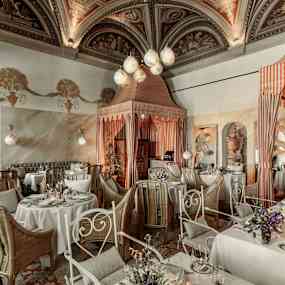 Gastronomin bär prägel av italiensk tradition, oavsett om måltiden intas på den romantiska terrassen eller i den stämningsfulla Sala Affresco. På tallriken finner du örter från hotellets egen köksträdgård, dagsfärsk fisk och handgjord pasta fylld med ost och räka, toppad med färskpressad lime.