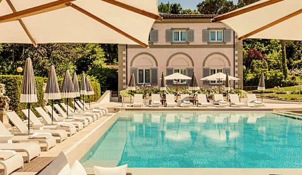Det första som möter dig på Villa Cora är doften av rosor och idegran, inramad av ekarnas skugga. Fågelsång hörs i den frodiga trädgården, där poolen ger svalka under den italienska solen. På en höjd i Toscanas böljande landskap vilar en palatsliknande byggnad från 1800-talets glansdagar. Florens anas på avstånd, medan atmosfären förblir lugn och avskild.