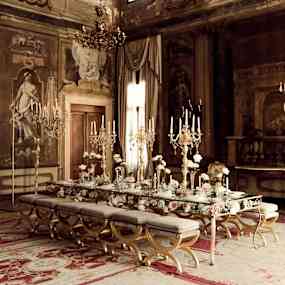 Låt majestätiska marmortrappor leda dig upp till hotellets eleganta rum och sviter som känns tagna ur ett konstverk från renässansen. Varje rum har en unik design med tunga draperier, handmålade tak och antika möbler som skapar en romantisk atmosfär.
