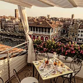 Vid Canal Grandes stillsamma vatten väntar Ca'Sagredo Hotel – ett vackert 1400-talspalats som viskar om svunna tider. När du vandrar genom palatsets praktfulla salonger märker du hur marmorgolvet svagt lutar – en fascinerande påminnelse om hotellets tre sekler av historia. Under gnistrande ljuskronor höll adeln och överklassen storslagna fester och hemliga möten.