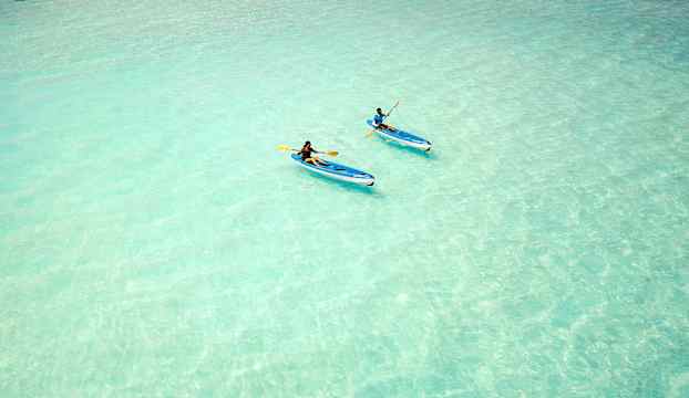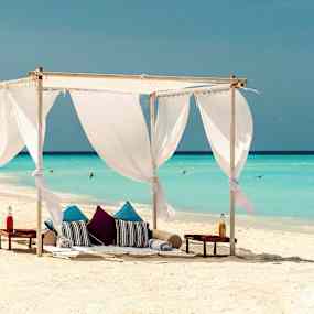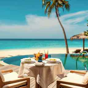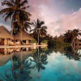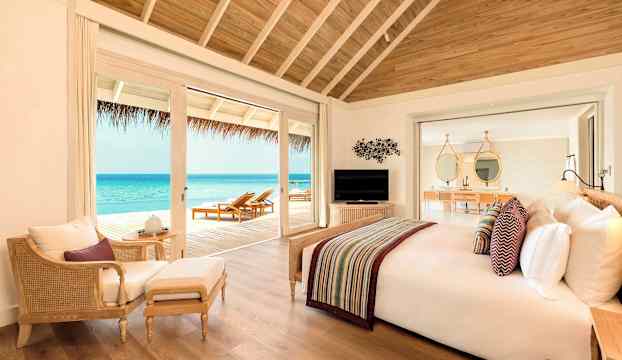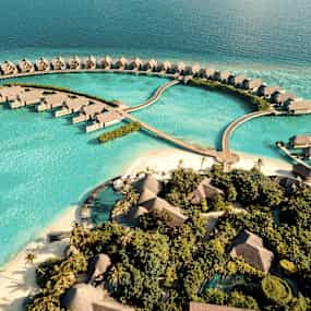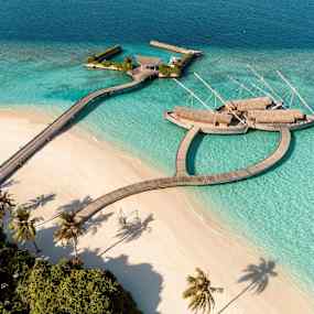 De stilfulla strand- och vattenvillorna med privata pooler smälter in i omgivningen som om de alltid hört hemma där – insvepta i grönska eller svävande över det turkosblå havet. Inomhus råder en känsla av stillhet och rymd, där ljusa nyanser, subtila mönster och mjukt sken skapar en harmonisk helhet. Här får tiden sträcka ut sig – perfekt för långa lässtunder i skuggan, en kall drink vid poolkanten, ett parti spel av något slag eller upptäcktsfärder med snorkel bland korallernas färgprakt.