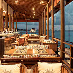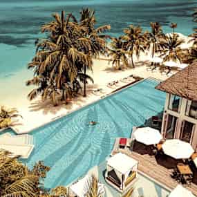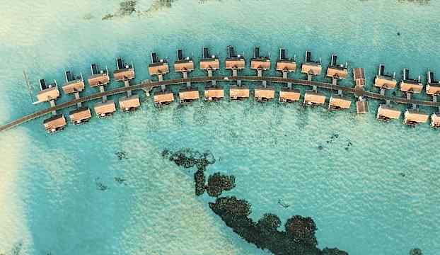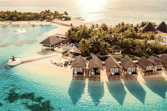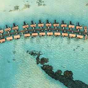 Privata villor sträcker sig längs stranden och ut på träpålar över vattnet. Inne väntar generösa ytor, högt i tak och trädetaljer. Övervattensvillorna bjuder på imponerande glasgolv som ger en inblick i det marina undervattenslivet.