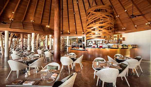 Dagarna rör sig mellan lekfulla äventyr och lågmäld elegans: ett morgondopp i infinitypoolen, snorkling bland närliggande rev eller sex meter ner under havsytan till restaurangen M6m, där måltiden ackompanjeras av fiskstim och revhajar. Barnen fyller sina dagar med äventyr, bad och skapande i hotellets barnklubb, medan vuxna hittar sitt eget lugn i spaavdelningen.