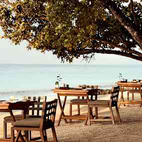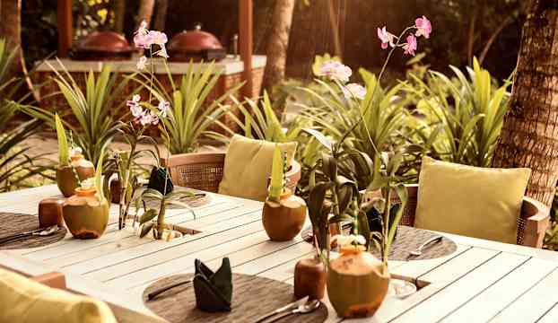Hotellets gastronomi speglar öns internationella karaktär, med sydostasiatiska rätter, italienska favoriter och nygrillade specialiteter som serveras direkt på stranden. Anguru bjuder på en oförglömlig teppanyaki i sin öppna paviljong där rätterna tillagas framför dig. Under dagen serverar barerna välbalanserade cocktails och snacks intill poolen, medan menyn ändras till kvällen där eleganta viner och cocktails avrundar dagen med en subtil elegans.