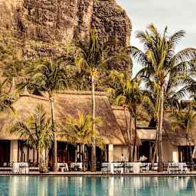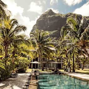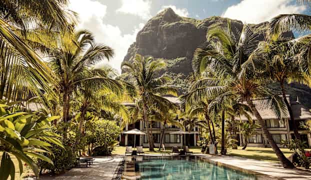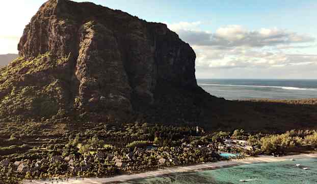 I skuggan av det mäktiga Le Morne-berget breder Dinarobin Beachcomber Golf Resort & Spa ut sig, med sin naturliga elegans som både känns självklar och tidlös. Den arkitektoniska stilfullheten framhävs av traditionella mörka halmtak och pelare i ljus basalt, omgivna av lummiga trädgårdar med dofter av frangipani-blommor.
