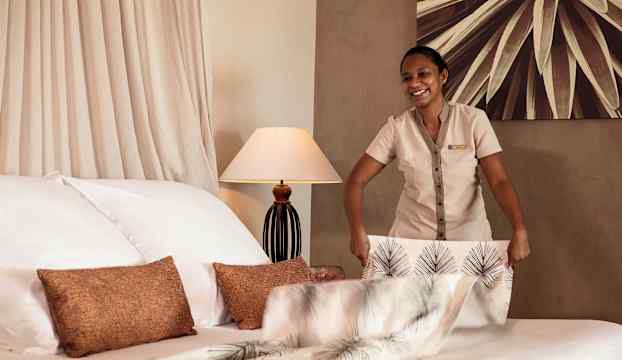 Den varma och personliga servicen kännetecknar Beachcomber-hotellen, där personalen har en vacker passion att skapa hemtrevnad genom närvaro och detaljmedvetenhet. Du känner dig som hemma i de luftiga och smakfullt inredda sviterna, med ljusa färger, botaniska detaljer och inslag av polerat mörkt trä. Privata terrasser och balkonger erbjuder utsikt över hotellets grönskande trädgårdar, eller Indiska oceanens glittrande vatten.