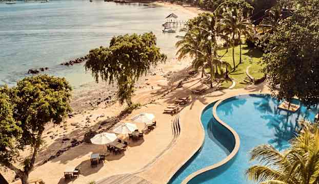 Intill den historiska byn Balaclava vilar The Westin Turtle Bay Resort & Spa, Mauritius – som en stillsam dröm i en skyddad lagun. Här blickar du ut över det marina reservatet Turtle Bay, där det klara vattnet glittrar mot horisonten. Bakom hotellet breder sockerrörsfälten ut sig, och bortom dem reser sig öns böljande berg – en storslagen påminnelse om Mauritius skönhet.