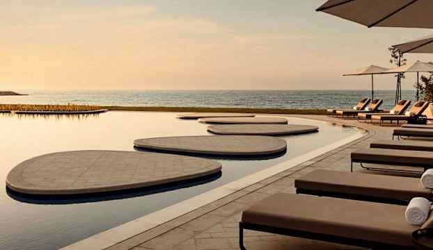 När solens första strålar når Omanbuktens kristallklara vatten, skiner The St. Regis Al Mouj Muscat Resort upp med sin ljusa prakt. Arkitekturen för tankarna till en lyxyacht med svepande linjer och vitmålad fasad. Innanför dörrarna väntar en rymd med stora fönster, högt i tak och omsorgsfullt utvalda detaljer.