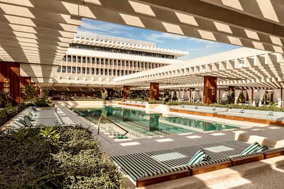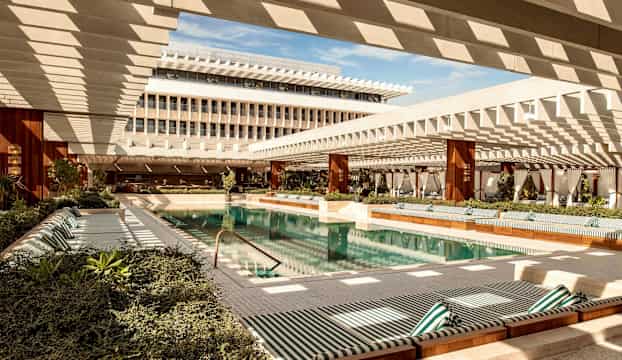 I Dohas pulserande hjärta, där historiskt arv möter modern elegans, reser sig The Ned Doha som en fängslande symbol för tidlös lyx. Nyrenoverat och med en fascinerande fasad från 1960-talet, är hotellet perfekt beläget för att uppleva stadens pulserande rytm. Det bjuder på en fridfull plats av sofistikerad komfort där varje detalj är noggrant utformad för ditt välbefinnande.