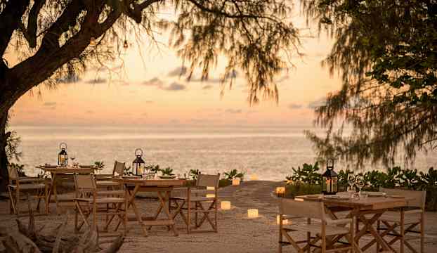 På Four Seasons Resort Seychelles at Desroches Island väntar en symfoni av smaker, redo att förföra dina sinnen. Hotellets sofistikerade restauranger och barer tar dig på en gastronomisk resa runt om i världen. Starta dagen med en medelhavsinspirerad frukost vid poolen, njut av delikata japanska smårätter till lunch och låt doften av nygrillade fisk- och kötträtter leda dig till en middag vid strandkanten. När dagen går mot sitt slut serveras eleganta aperitifer i en avslappnad lounge och färgsprakande cocktails intill solnedgångens eldiga toner.