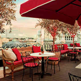Hotellets höjdpunkt finner du på takterrassen – La Terraza och La Pérgola som stoltserar med utomordentliga smaker över Madrids strålande silhuett. Smutta på sofistikerade cocktails medan du njuter av utsökt tapas bland olivträd och cypresser. Slå dig ner i Ático Restaurante där den Michelin-belönade kocken Ramón Freixa bjuder på traditionella spanska rätter med en modern twist.