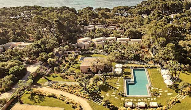 Djupt inbäddat i det grönskande skogslandskapet vilar det exklusiva vuxenhotellet Pleta de Mar – Luxury Hotel by Nature. Här möts du av slingrande stigar som mjukt leder genom orörda gräsmattor, fram till avskilda platser där lugnet råder. Med en konstnärs känsla för detaljer har arkitekten Antoni Esteva mästerligt förenat modern design med naturens egna former och material, vilket skapar en sömlös harmoni mellan inre lyx och omgivande landskap.