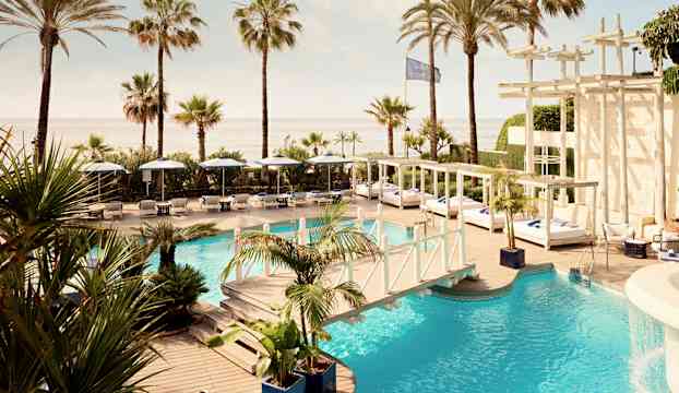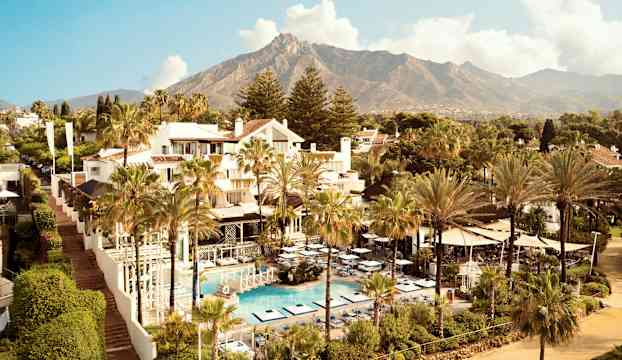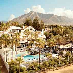Vid den soliga kusten glänser Puente Romano Marbella med sin vitmålade fasad. Kliv in i denna pittoreska andalusiska by, uppkallad efter den romerska bron som en gång förenade Rom med Cádiz och nu pryder hotellets hjärta. Följ de charmiga stigarna, förbi inbjudande pooler som lockar till svalkande dopp och fortsätt genom trädgårdar fyllda med färgsprakande pelargoner samt doftande apelsin- och fikusträd. På vägen möts du av den magiska doften av jasmin som fyller luften.