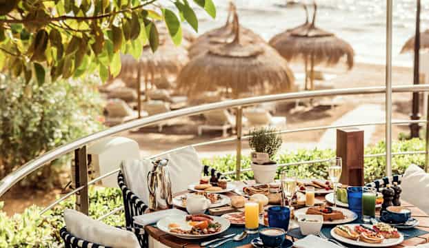 Efter en dag fylld med kulinariska upplevelser och minnesvärda äventyr, välkomnas du in i rymliga sviter där sandfärgade nyanser skapar en lugn och inbjudande miljö. Den eleganta marmorn smälter harmoniskt samman med den sofistikerade inredningen och badar i det gyllene ljuset från Medelhavet. Här erbjuds den perfekta miljön för att varva ner och njuta av en lugn och fridfull natts sömn.