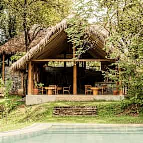 Gal Oya Lodge, välkomnar dig till en ekologisk lodge djupt inne i Sri Lankas gröna djungel. Här möts du av en atmosfär som andas både lyx och natur. Filosofin bakom designen är att föra dig närmare naturen genom att skydda den lokala miljön. Konceptet genomsyrar varje detalj från den orörda skogen runt om lodgen till de naturliga materialvalen – som cajanträ och illuk. Taken av halm kompletterar den naturliga färgpaletten och bidrar till en hemtrevlig miljö.