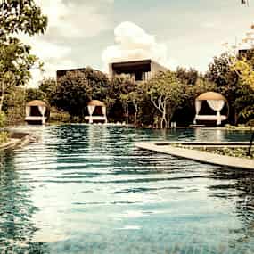 I ett av Asiens mest omtalade naturområden breder Hilton Yala Resort ut sig över sju hektar mark. Hotellet ligger direkt vid Yala National Park, känd för sitt rika djurliv och ovanligt hög leopardtäthet. Den låga arkitekturen och materialvalen i sten och trä är anpassade efter landskapet, och området övergår sömlöst i både djungel och kust utan stängsel.