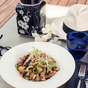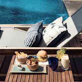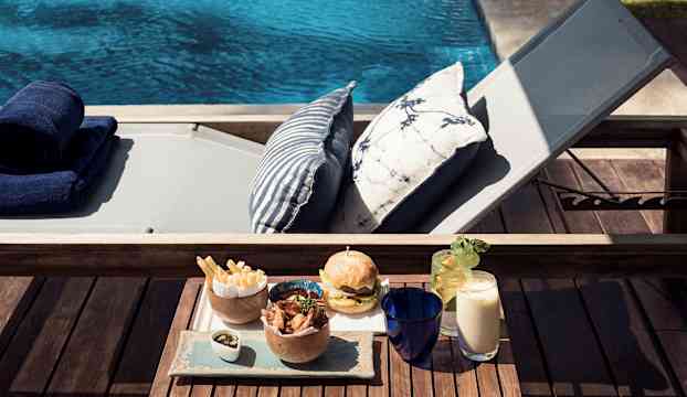 Njut av kulinariska äventyr i hotellets restaurang. Här väntar en gastronomisk upplevelse med fokus på lokala råvaror och utsökta rätter som saftig ribeye steak, kokos- och senapsbaserad fiskcurry och smakrika Hoisin-räkor. Baren serverar uppfriskande drycker i skuggan eller vid hotellets infinity pool där inbjudande solstolar och cabanas väntar på avkoppling.