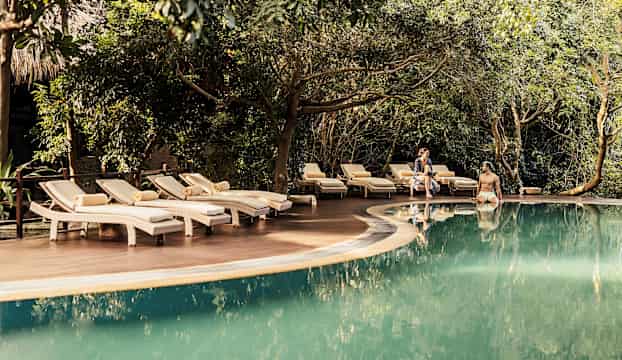 Ett naturreservat på 10 hektar omfamnar hotellet, där tropiska mangroveskogar och en orörd strand bildar kulissen för ditt boende. Villorna är ljusa och rymliga, med träbjälkar i taket och exklusiva badrum. Starta dina dagar med ett uppfriskande morgondopp i den fridfulla poolen. Eller kanske föredrar du att följa stigen ner till den privata, gyllene sandstranden.