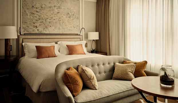 Hotellets 54 rum och sviter präglas av en tidlös elegans där jordnära toner, mjuka textilier och vackra trägolv skapar en lugn atmosfär. Ljuset faller över klädda sänggavlar, noggrant utvald konst och subtila inslag av blå morpho-fjärilar, inspirerade av Hans Sloanes arv, medan marmorbadrummen tillför en extra touch av lyx. I de större sviterna väntar generösa sällskapsytor där du landar i en mer avslappnad rytm med utsikt mot omgivningarna.