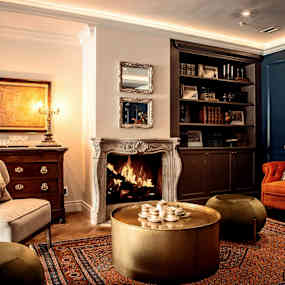 Redan vid första steget in möts du av doften av Diptyque, ljus över franska ekgolv och fönster som fångar torgets lugna rytm. Den privata hissen öppnar direkt in i sviterna, som mer liknar eleganta stadsresidens än hotellrum. Högt i tak, ekgolv, midnattsblå väggar och klassiska linjer skapar en europeisk känsla med samtida skärpa. Högst upp ligger hotellets penthouse – ett pied-à-terre i två våningar där stadsutsikten blir en del av rummet.