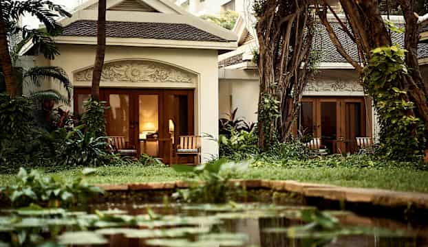 Hotellets rum och sviter är en hyllning till thailändskt hantverk och modern design. Här omfamnas du av teak och traditionella inredningsdetaljer som för tankarna till en stilfull privatbostad. Njut av en fängslande utsikt över tropiska trädgårdar, den glittrande poolen eller Bangkoks pulserande gator.