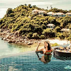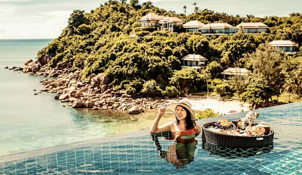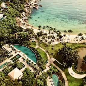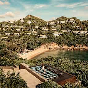 På en grönskande sluttning med betagande vyer över den fridfulla stranden Lamai, vilar Banyan Tree Samui. Detta är en plats där tropisk lyx och avskildhet möts i ljuv harmoni, något som fångas mjukt i hotellets spapaviljonger eller på din egen terrass när du betraktar den omgivande naturens milda skiftningar i tusen nyanser av grönt. Omgivna av frodiga kokospalmer och tät djungel ligger 88 exklusiva poolvillor, perfekt integrerade i naturens eget mönster, i en väl avvägd balans. Varje villa är ett privat paradis, där infinitypoolerna speglar den klarblå himlen, solterrasserna fångar den ljumma brisen och panoramautsikten suddar ut gränsen mellan inomhus och utomhus.