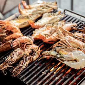 När solen sjunker och kvällen tar vid, vaknar ett magiskt skådespel till liv vid den glödande dammen. En flotte glider över vattnet mot Black Ginger – en matupplevelse där eldflammor speglas i det mörka vattnet och thailändska smaker serveras under öppen himmel i traditionella träpaviljonger.